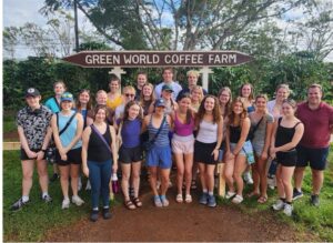 At the Wahiawā Botanical Gardens, the practice of lei making is taught to visitors, both to carry on the tradition and teach the significance of the weave to visitors, but also to aid in the onerous task of weaving approximately 53,000 lei for Memorial Day. The Wahiawā Botanical Gardens contributes 7,000 natural lei every year to the project. In the hour and a half the Whitworth students were there, we made one hundred woven Ti lei. Hundreds of organizations run similar lei making sessions for the five months leading up to Memorial Day, freezing the lei braids to keep them until May.